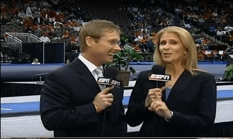 For most of the newer fans you will know her more from being a broadcast on air personality who did both elite and NCAA competitions as one half of the best pair commentary team. She is iconic alongside her friend Bart Connor